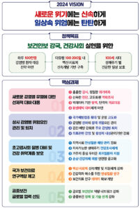 이번 계획은 코로나19 위기단계가 ‘심각’에서 ‘경계’로 하향된 뒤 질병관리청에서 발표하는 첫 번째 정책계획으로, “보건안보 강국, 건강사회 실현”이라는 정책목표를 담고 있다.