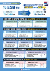 글로벌 벤처 4대 강국 도약을 위해 역대 최대 규모인 1조 1000억 원의 모태펀드를 공급하고, 중소기업의 기술 혁신과 기술주도 성장을 이끌 연구개발 지원 예산은 전년보다 45% 늘린 2조 1955억 원을 투입한다.